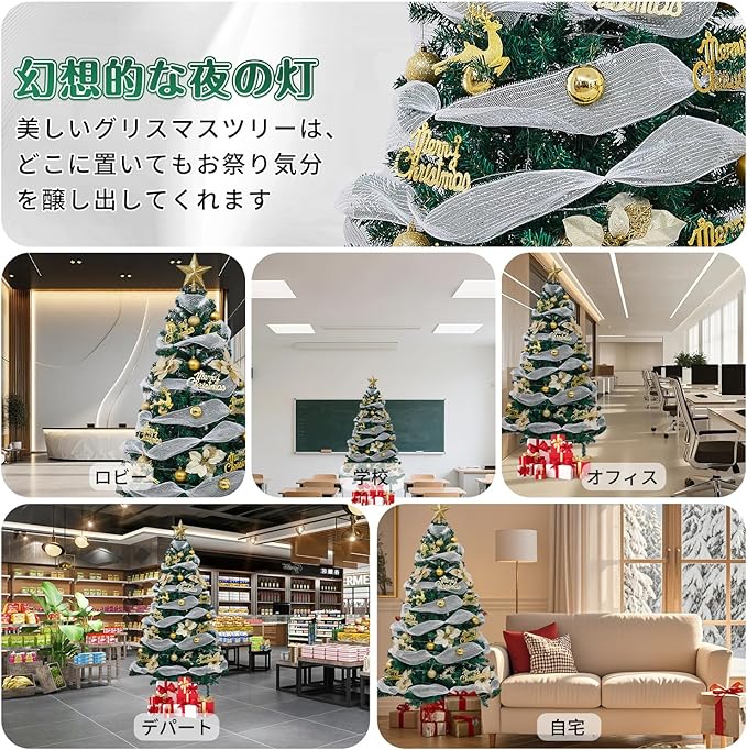 【圧倒的な存在感とリアルな美しさ】まるでおとぎ話の森から抜け出したような、鮮やかで青々とした葉と高濃密度の枝(300本)が魅力。全長120cmの堂々たるサイズで、リビングや玄関はもちろん、カフェやショップなど空間を華やかに彩り、一気にクリスマスムードを盛り上げます。