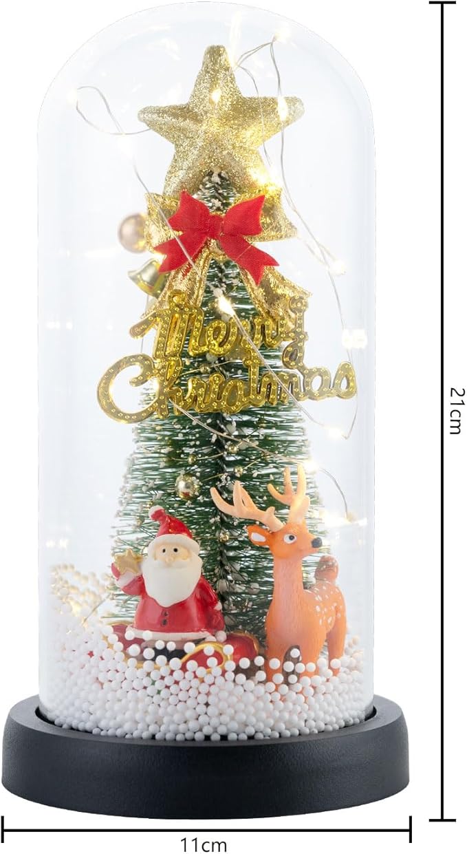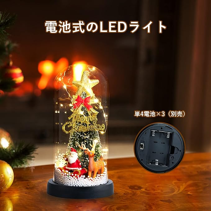 【2025最新型】クリスマスツリー 卓上 ミニクリスマスツリー ガラスドーム 高さ21cm LEDライト付き 電池式 クリスマス飾り クリスマスギフト クリスマスプレゼント 暖かい雰囲気満々 部屋飾り お店 インテリア プレゼント