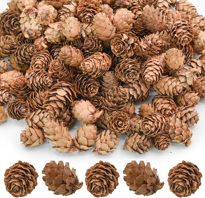 いいサイズ:ミニ松かさの一個のサイズは2.5㎝から3.5㎝ぐらいになります。ちょうどいいサイズのため、DIYや陳列に使いやすいで、あらゆる装飾のニーズを満たします。