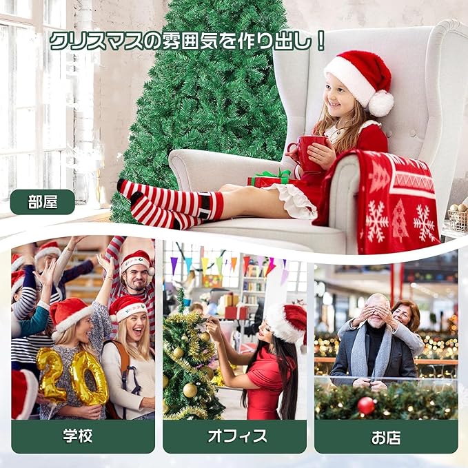 定番人気のクリスマスツリーなので、置く場所を選びません!ホール、ホテル、オフィス、デパート、パーティー、学校、幼稚園、自宅、お店、などに飾る最適。クリスマスの雰囲気を作り出します、メリークリスマス!
