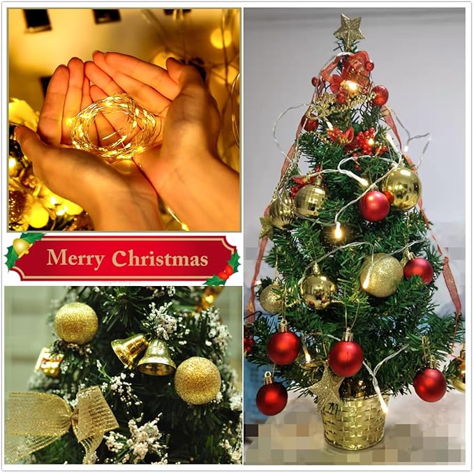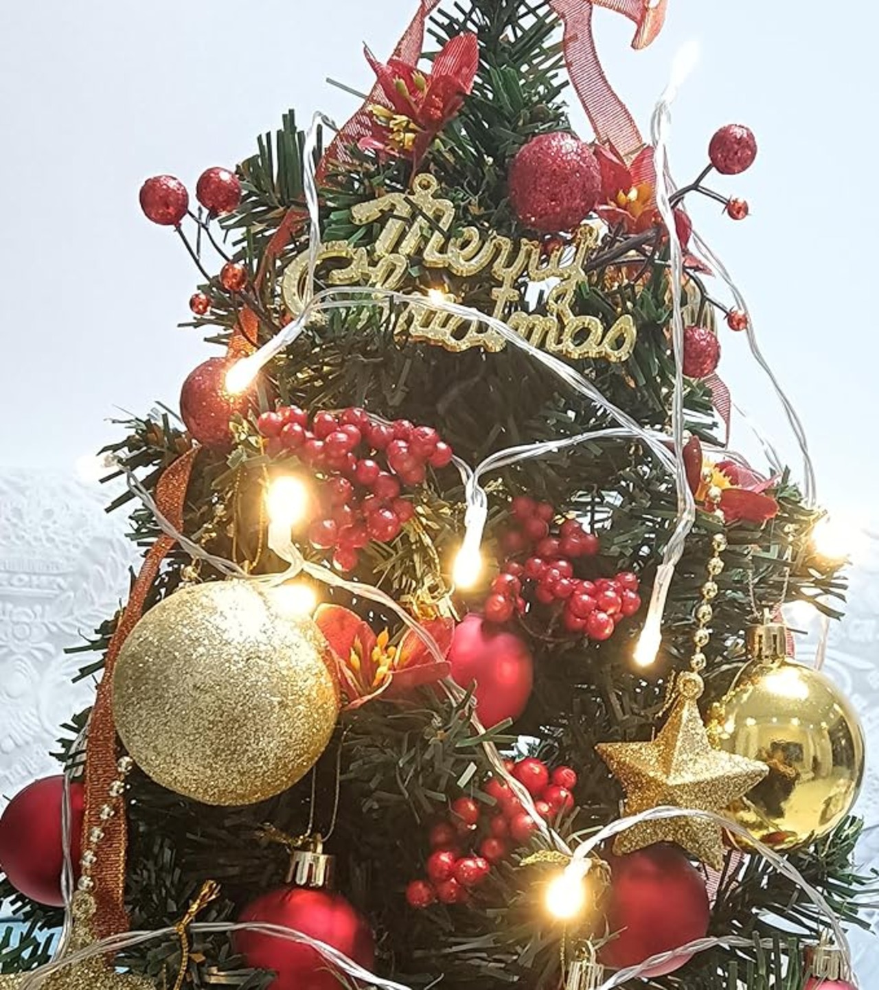 LEDストリングライトはツリーをキラキラと輝かせる。電池式のLED電球で、充電の必要がなく、3本の電池 だけでキラキラと点灯できます。(ご注意:電池が付属していません。)