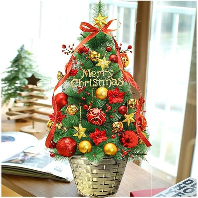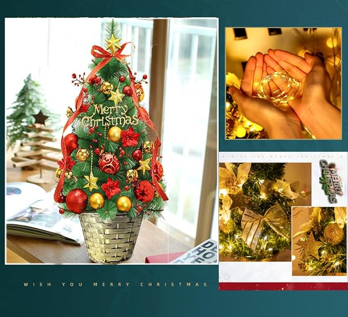 クリスマスツリー 卓上 LEDライト付き クリスマスツリーミニ 60cm 飾り クリスマスオーナメント イルミネーション ミニサイズ おしゃれ 部屋 商店 プレゼント (レッド)