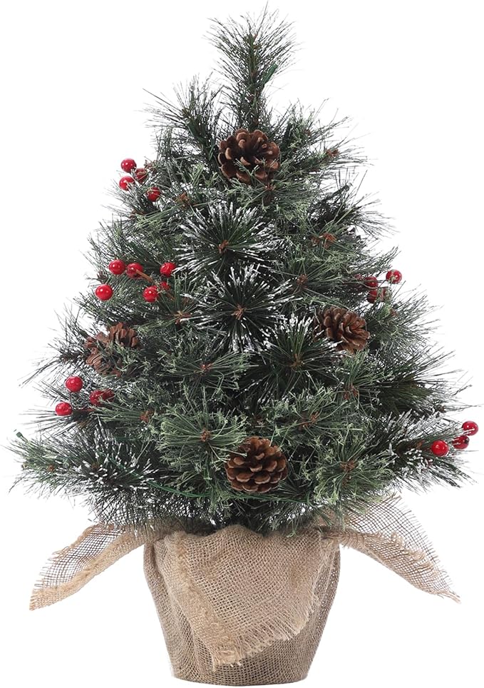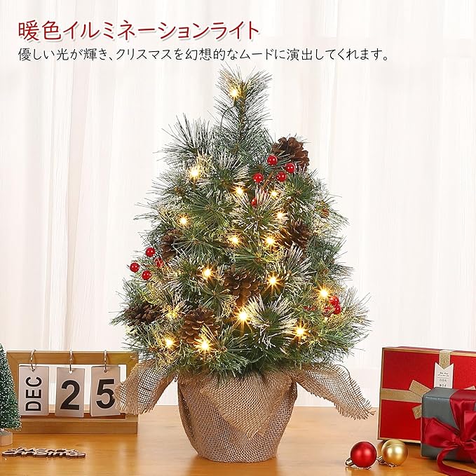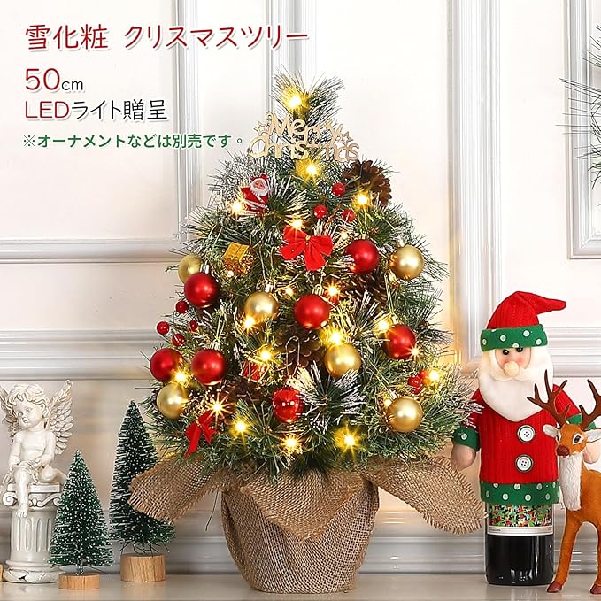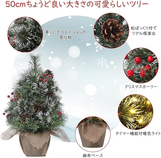 Eukerクリスマスツリー 50cm 雪化粧 松ぼっくり LEDイルミネーションライト付き 組立簡単 おしゃれ クリスマス装飾 卓上 ミニクリスマスツリー クリスマスグッズ 足隠し