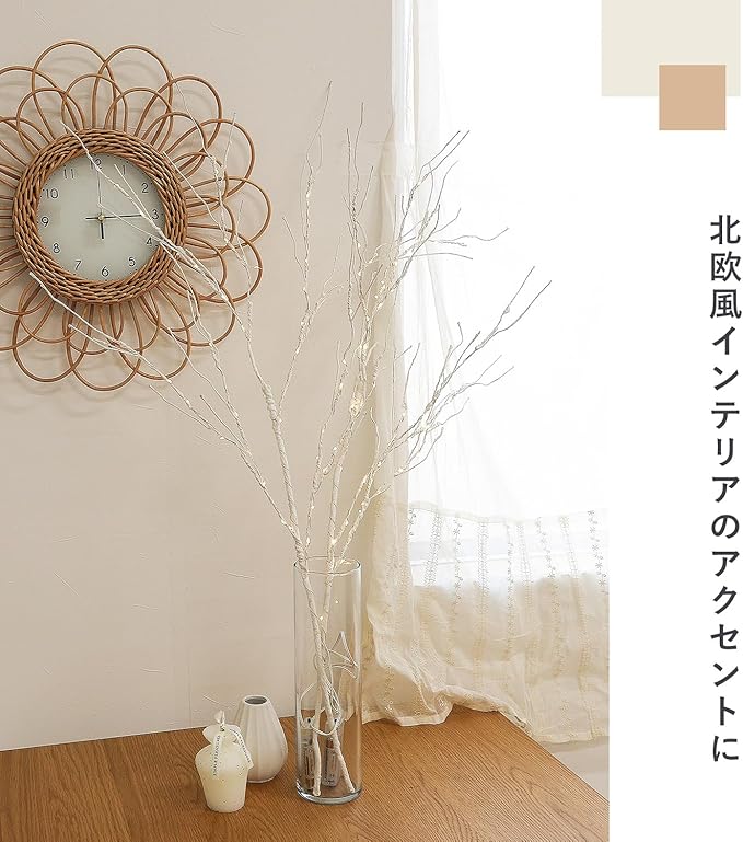 【使い方いろいろ】昼はそのまま飾って、夜はライトをON。昼と夜で違う雰囲気を楽しめます。ドライフラワーやクリスマスのオーナメントを組み合わせた楽しみ方も◎ 誰でも簡単に北欧風のおしゃれな雰囲気を味わえます。