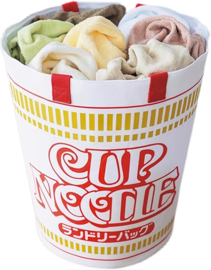 カップラーメン ランドリーバスケット 折りたためる 洗濯かご ランドリーかご 洗濯物入れ 撥水加工 取っ手付き 衣類収納 寝室 脱衣所 リビング 面白い (ホワイト)