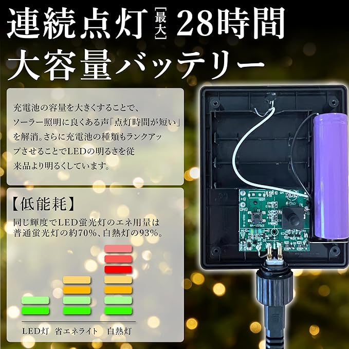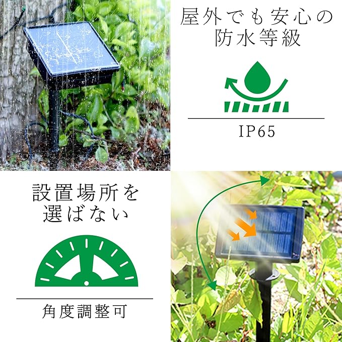 【長時間使用可能&エコ設計】 太陽光での充電式なので、電気代ゼロ!フル充電には約8時間、最大20時間の連続使用が可能です。ソーラー充電式イルミネーションライトとして、自動点灯機能付きで、周りが暗くなると自動的に点灯し、明るくなると消灯。節約しながら、外観をおしゃれに演出できます。設置も簡単で、専門知識がなくてもすぐに楽しめるエコな照明です。