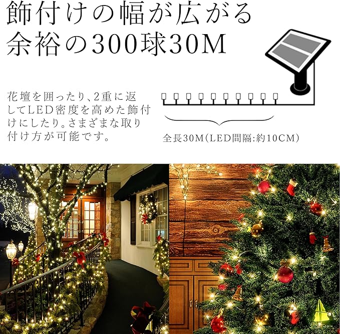 KIMOC ソーラー イルミネーションライト ガーデンライト LED 30m 300球 屋外 庭 ライト ストレート IP65 防水 8モード 夜間自動 点灯 クリスマス ハロウィン パーティー バレンタインデー 新年 祝日 結婚式 誕生日 学園祭屋外 室外 室内 庭対応 ソーラーパネル 大容量 飾りライト ソーラー (シャンパンゴールド)