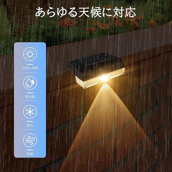 【防水設計&保証】ABS樹脂製で高品質ソーラーパネル搭載の防水仕様。雨や小雪、風にも耐えます。購入時の問題や不具合があれば、いつでもご連絡ください。迅速に対応いたします。
