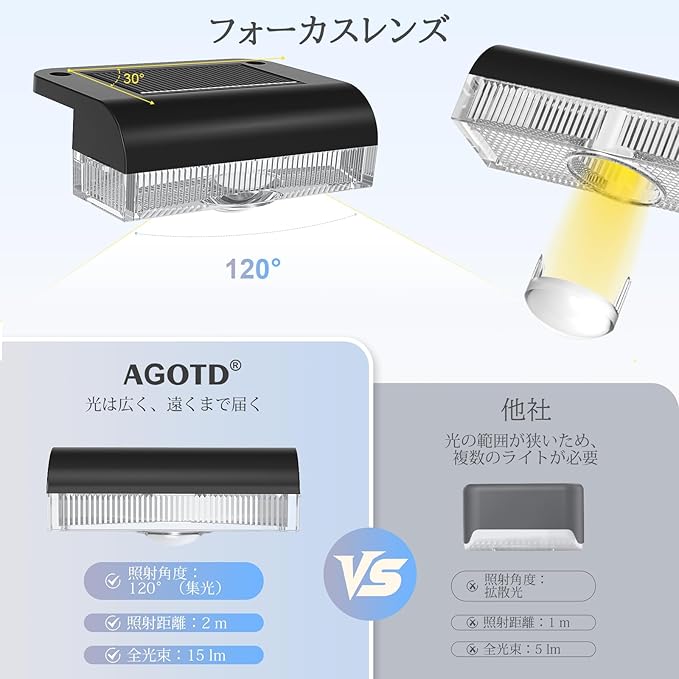 AGOTD ガーデンライト 屋外 防水 ソーラー ライト 自動点灯 省エネ 玄関照明 庭 駐車場 門柱灯 アウトドア フェンス用(4個セット)