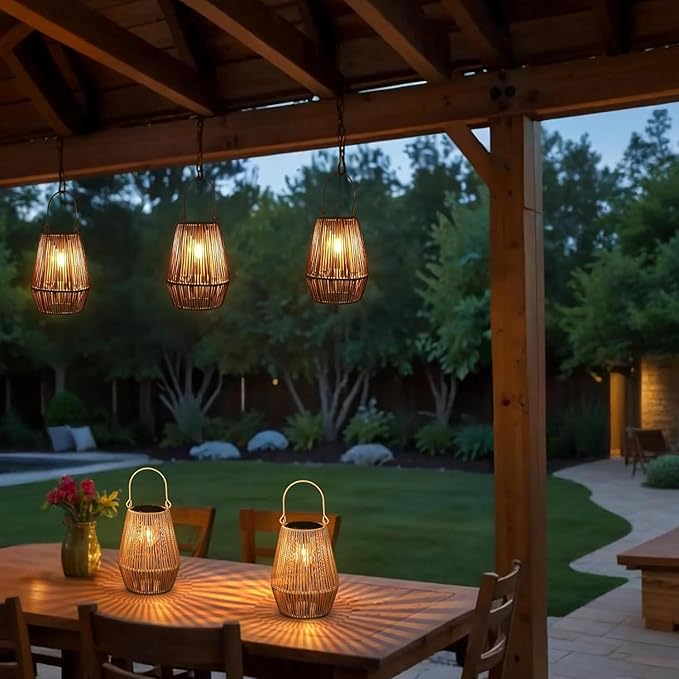 ソーラーランタン ソーラーライト 屋外 防水 ガーデンライト おしゃれ ガーデニング LED ランタン 籐編み風 電球色 自動点灯 庭 玄関 ベランダ 飾り 照明 吊り下げ 置き型
