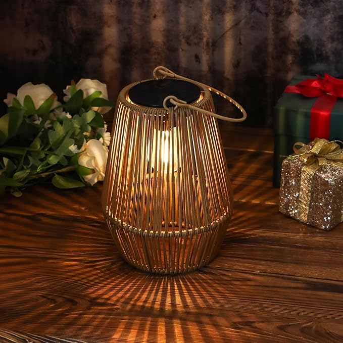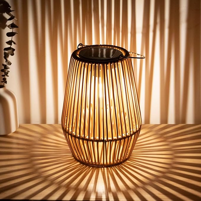 【おしゃれな籐編み風デザイン】人工籐で編まれたラタン調デザインがナチュラルで温かみのある雰囲気を演出します。編み込みデザインからこぼれる光が、床や壁に美しい影の模様を描きます。夜のひとときをロマンチックに演出し、リラックスした雰囲気を楽しめます。