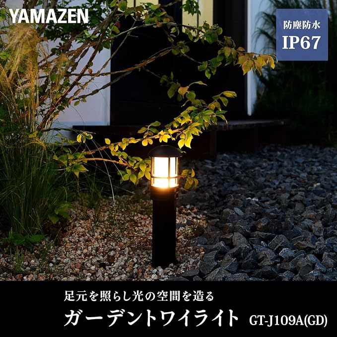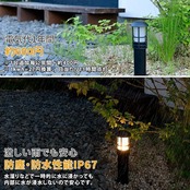 【特徴】足元を優しく照らすガーデンライトです。スタートキットに追加してライトアップの幅を広げましょう。IP65の防塵防水性能なので雨が降っても問題なくご使用いただけます(屋外用PSE認証取得済み)。ライトは耐久性の高いアルミ素材を採用し、LED寿命は約50,000時間と長期交換が不要なので、お手入れも簡単です。140度の角度調整が可能で、光源が高いポール式ライトで広範囲を照らします。