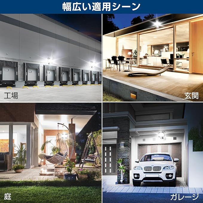 [IP65防水仕様で屋内外の使用に対応]このライトはIP65の防水性能を備えており、雨や風、雪といった厳しい天候でも問題なく使用できます。防塵・防水性能が高いため、屋外での使用に最適で、庭、駐車場、玄関、倉庫、ガレージなど、どのような場所でも安心して設置できます。もちろん、屋内でも利用可能で、廊下や倉庫など多用途で活躍します。防水設計により長期間使用でき、メンテナンスも簡単です。
