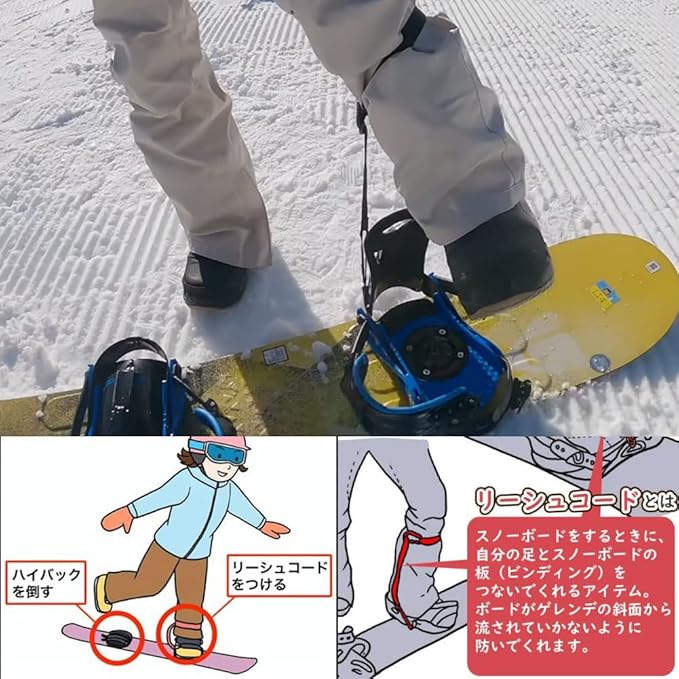 【用途】転倒時など、ボードとブーツが外れた時でもリーシュがあれば板の流れを止めることができます。
