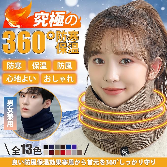 【360 極めた暖かさ&あったか裏起毛】表地にはニット素材、裏地にはボア素材を使用した360 全方位防寒保温のネックウォーマーです。360 首をかばって耳までもしっかり保護していっそう保温効果を高めて、保温性と防寒性と防風性を兼ね備えた着け心地のよいネックウォーマーです。装着する際に裏のボアが見えるデザインで、おしゃれながら保温効果も提供します。寒い日に大変重宝し、秋冬のアウトドアスポーツに最適なネックウォーマーです。