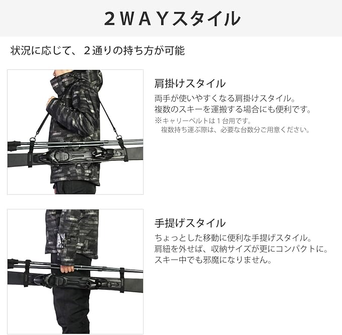[バックスポット] スキーキャリーベルト スキーバンド ショルダーストラップつき 【肩掛け 手提げ 2WAY】
