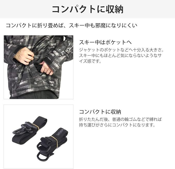 コンパクトなのでスキー中はポケットなどに収納可能。