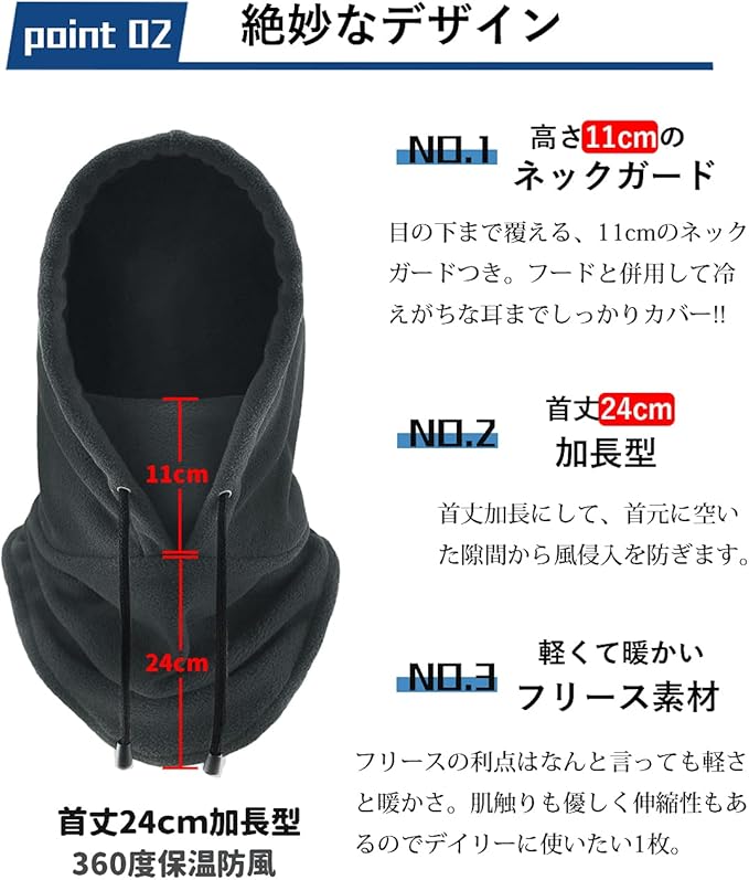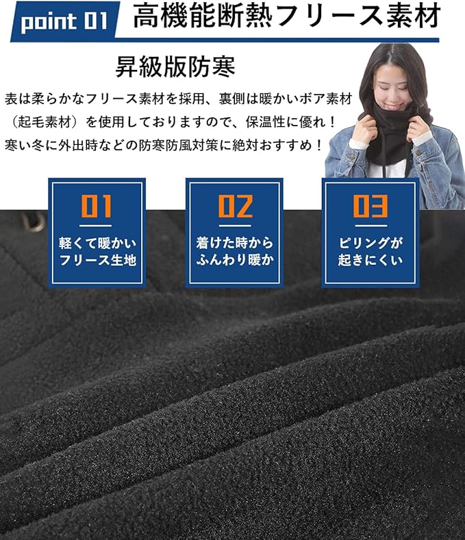 [Bafup] ネックウォーマー 帽子 ネックカバー 3Way・高機能断熱フリース素材・360度保温防風・息苦しくない 目出し帽 冬 フードウォーマー 3Way 首長タイプ アウトドア・スポーツ・スキー・バイク・自転車・通勤・通学・男女兼用