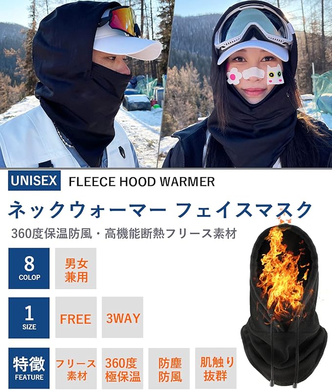 [Bafup] ネックウォーマー 帽子 ネックカバー 3Way・高機能断熱フリース素材・360度保温防風・息苦しくない 目出し帽 冬 フードウォーマー 3Way 首長タイプ アウトドア・スポーツ・スキー・バイク・自転車・通勤・通学・男女兼用