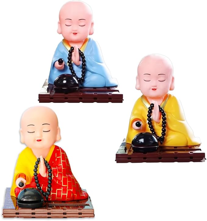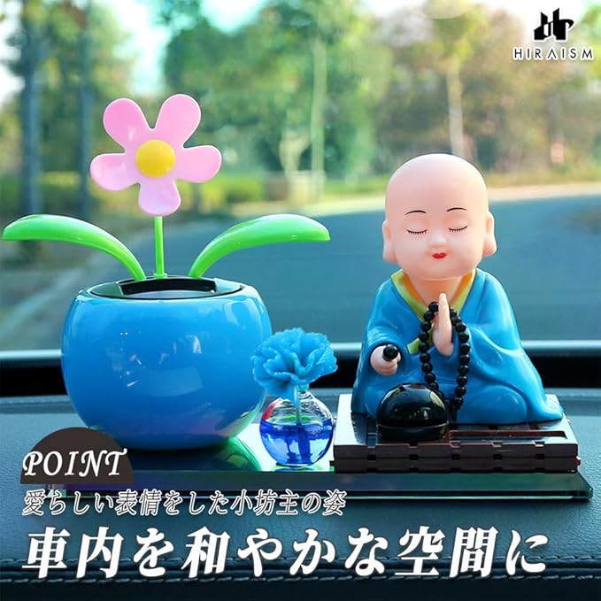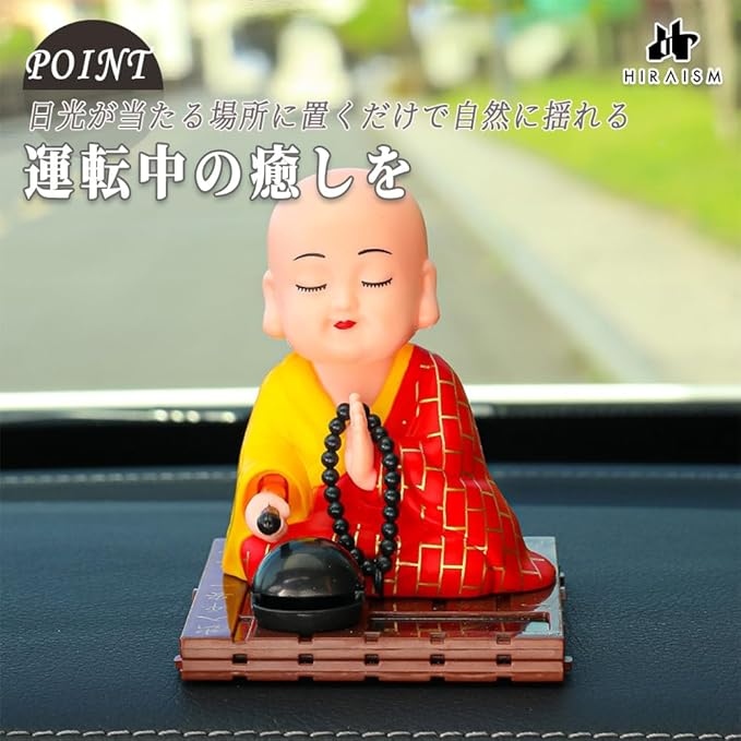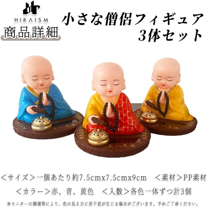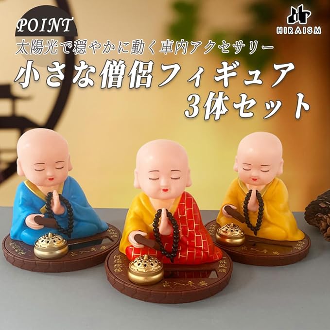 HIRAISM 小さな僧侶 フィギュア 3体セット ソーラー電池 安全祈願 風水グッズ