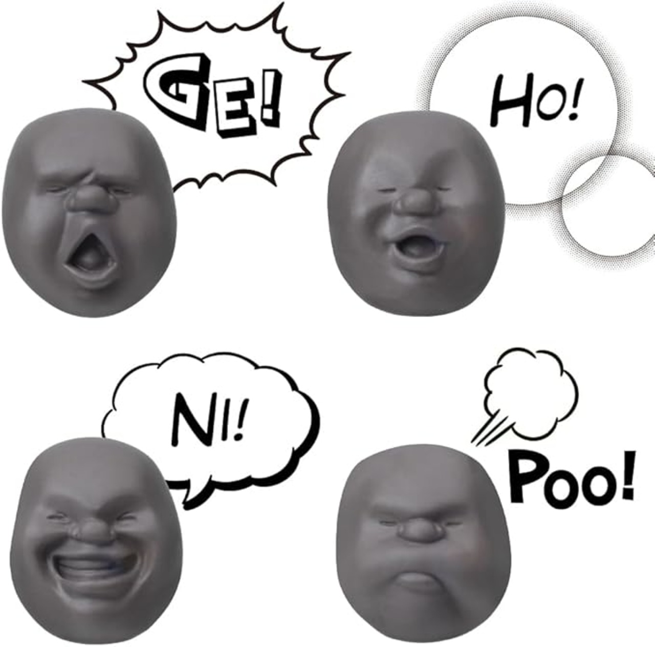最近あまり笑っていない、ストレスを感じる、誰かとすれ違いがち…等、そんな悩みがある人に。一度握ればもう手放せないこの感触、つい時間を忘れてしまいます。ちょっと気の利いたプレゼントにどうぞ。なかなか言葉で言えない気持ちを書いたメッセージをそえて…。夫婦喧嘩で投げ合っても柔らかいので安心です(が、おすすめできません)。※シリコンスタンド付きです。