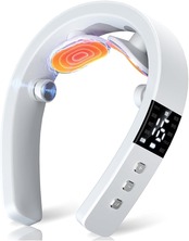 【新設計】 ネックケア 首 リラクゼーション器 理学療法士監修 (加温 振動 EMS&TENSのW効果) LED液晶ディスプレイ 10種類のモード 16段階の強度調整 軽量 USB充電式 コードレス 父の日 誕生日プレゼント お祝い 男女兼用 日本語説明書を同梱 (ホワイト)