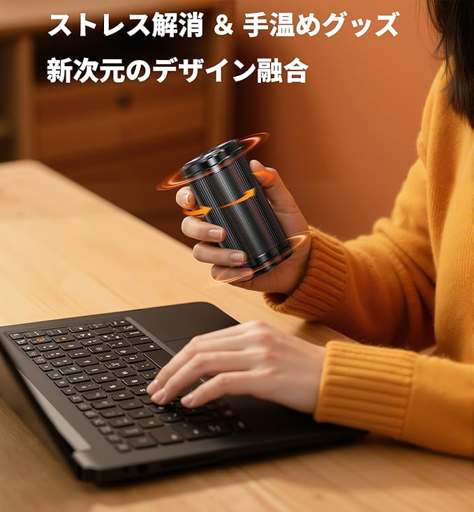 「2IN1・フィジェットトイ - 回転ストレス解压」この充電式カイロは、従来の暖房機能に加え、手中でスムーズに回転させて楽しめるフィジェットトイ機能を新搭載。ストレス解消や集中力向上に最適なデザインで、仕事や学習の合間のリラックスアイテムとしてもご利用いただけます。冬の外出時やオフィスでの使用はもちろん、回転させるだけで心も体も温まる、まったく新しい体験をお届けします。