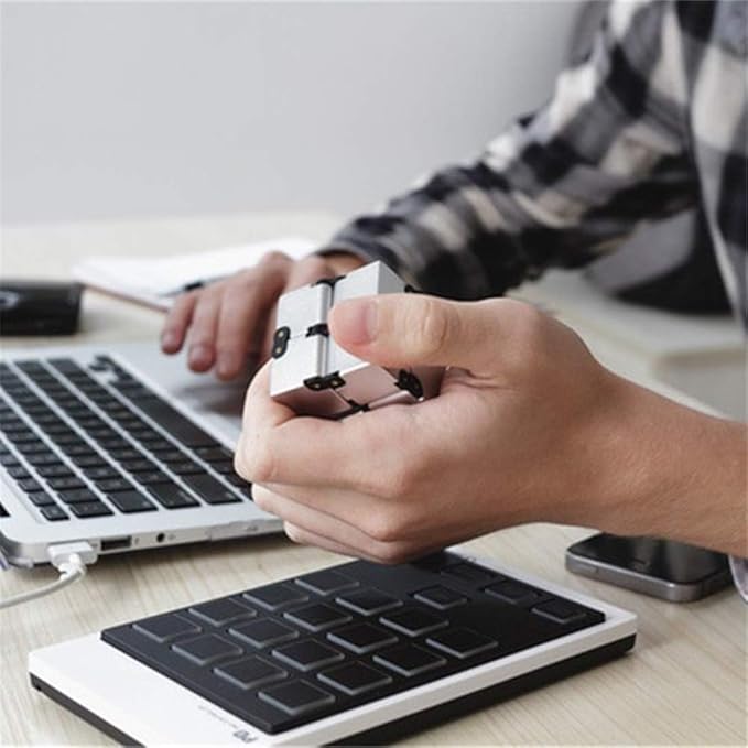 ●アルミニウム超合金ボディ:コンパクトで耐久性が強いアルミニウム合金を使用することで、手触り感が独特なフィジェットキューブ。