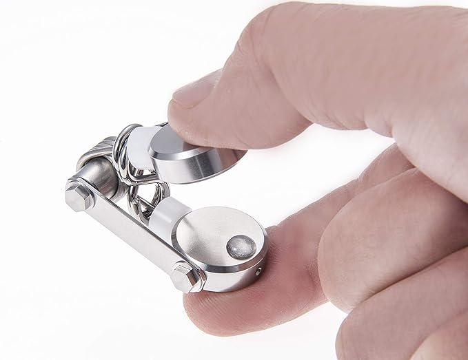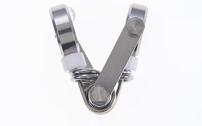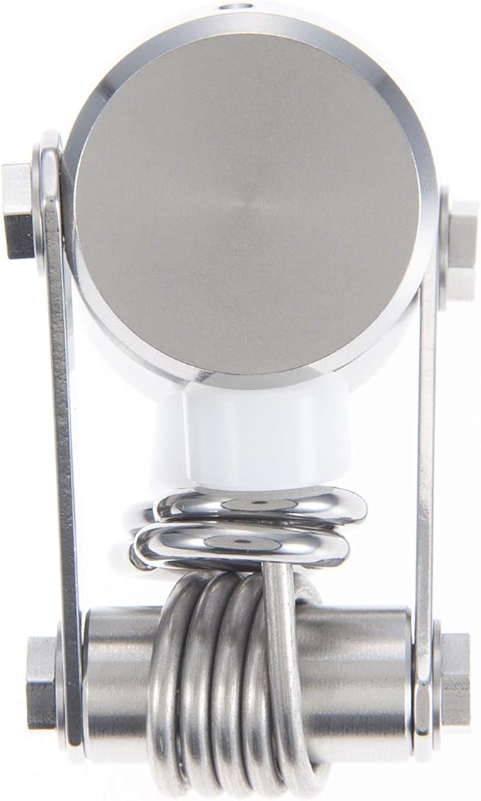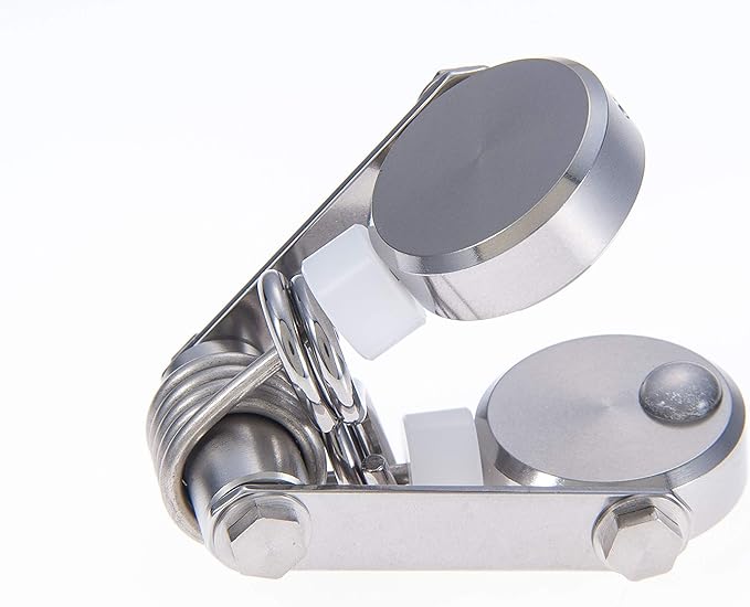 円形の把持部2か所を指で押さえ、押し込むことを繰り返して使用するストレス解消グッズ。 S字ストッパーで開くのを制限されたトーションバネに、ネジでプレートと締結された軸と把持部を組み込む構造。 バレル研磨を施しピットクッションが接着された把持部が良好な感触をもたらします。 カチッというクリック感はありませんのでご注意ください。 ばね定数:6.3(N・mm/deg) 重さ:49.3g 長さ:40.47mm 高さ:35.24mm 幅23.25mm