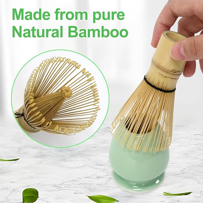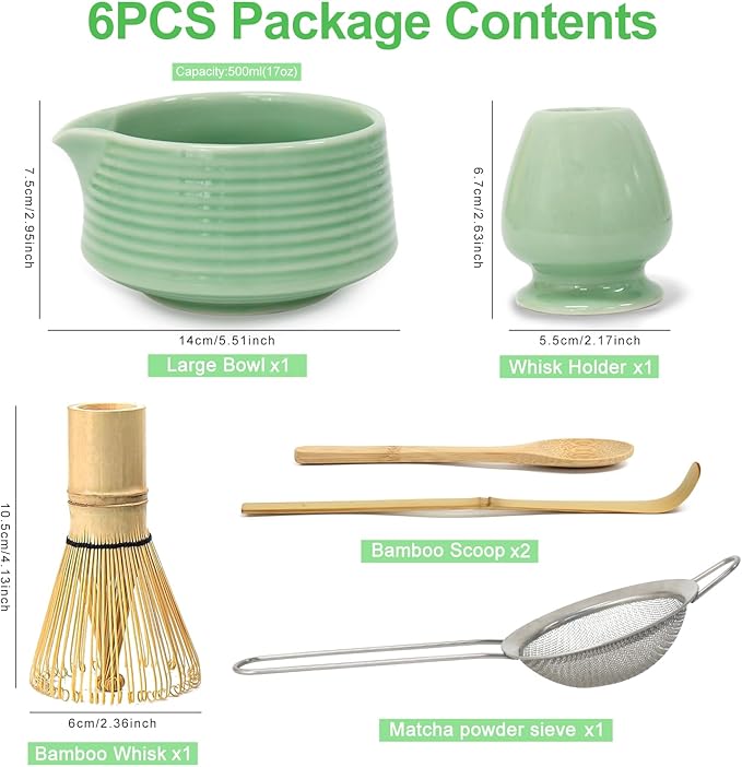 【プロの6点抹茶セット——簡単に本格的な日本の抹茶を作ることができます】:茶道具 セットには厚手の陶器の抹茶茶碗、大きな竹の茶筅、茶杓、茶筅立、抹茶スプーン、ステンレスの茶漉し が入っています。特に抹茶初心者がプロの淹れ方を素早く習得し、本格的な日本の抹茶の儀式を楽しむのに最適です。