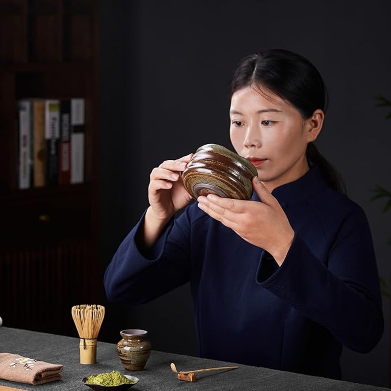 抹茶ティーセット 9件セット、 抹茶碗 茶筅 茶杓 茶笠 抹茶篩 綿茶巾 茶筒など、お抹茶は別途購入が必要です