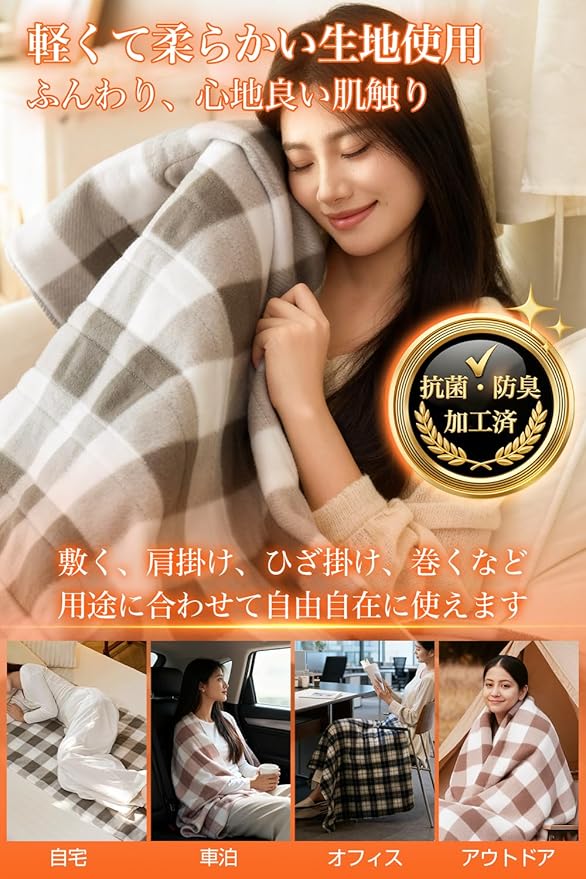 【優れた肌触り・保温性を持つ素材&抗菌防臭加工素材】裏表同じで起毛素材を採用、温まった空気をを逃がさず、寒い季節でも暖かさをしっかりとキープします。 また、柔らかくて極上の肌触りでふんわりと癒され、あったか快適な冬を!!さらに、抗菌防臭加工を施し、細菌の繁殖やにおいを抑えます。140x80cmの大判サイズ、掛け毛布、敷毛布、膝掛け、肩掛けなど様々な使い方ができます。