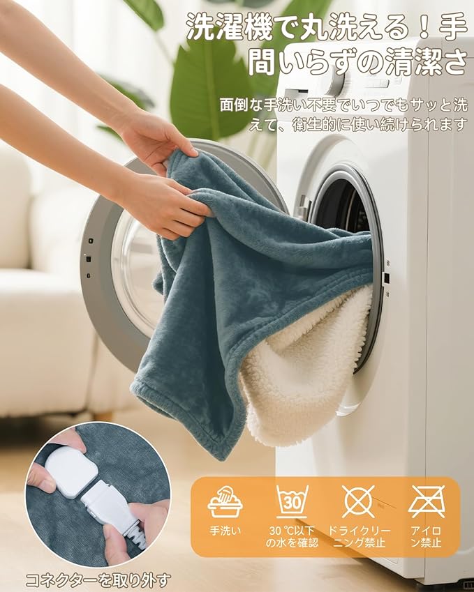 【洗濯機で丸洗いOK&ダニ退治モード&抗菌防臭&頭寒足熱設計で快適な冬を!】電気ひざ掛けは特別なシール技術で内部回路を完全保護!「洗濯=故障」の常識を覆しました。コントローラーを取り外して、簡単に洗えるから、いつでも清潔に衛生的にご利用でき、毎シーズン新品のような清潔さを保てます。(※ドラム式洗濯機、乾燥機には対応していません)また、高温(50℃)で加熱するとダニが死滅すると言われていますので、温度(50℃)に設定して布団にかけるとダニを消滅させることができ、電気膝かけを常に清潔に保ちます。冬だけでなく梅雨時の布団干し代わりとしても活躍します。また、「頭寒足熱の理想設計」で足元集中ヒーターで効率的温めくれ、上半身は暑くなりすぎず「快適な温度バランス」を実現しました。折りたたみで収納しやすく、毎年冬に再利用することもできるので経済的でよいチョイスを選びましょう。特に冷えやすい女性にオススメです。