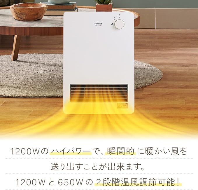 1200Wのハイパワーで、瞬間的に暖かい風を送り出すことが出来ます。