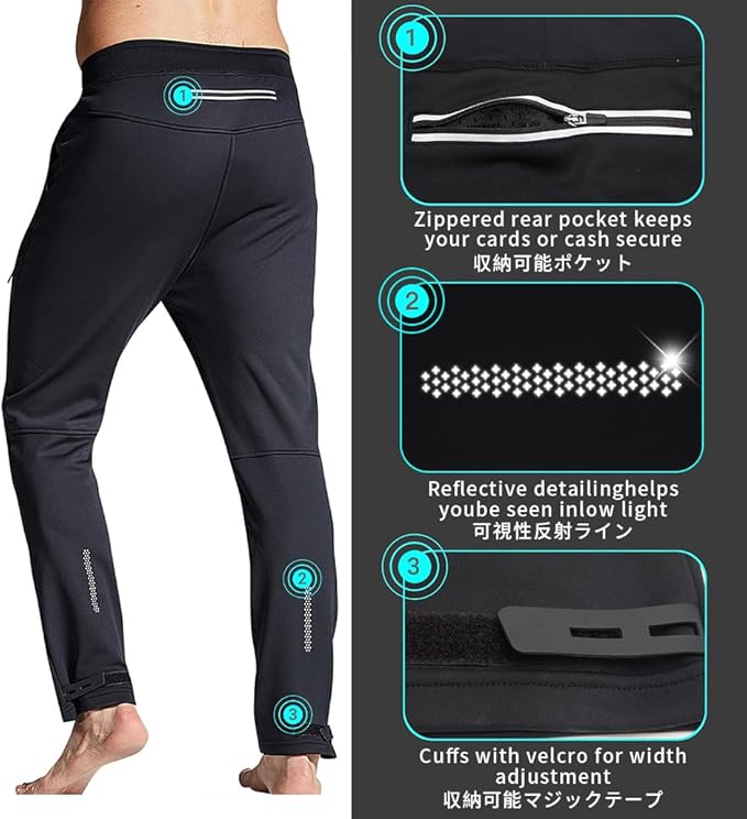 [Souke Sports] メンズ サイクル パンツ 冬用 裏起毛 サイクリングウェア 自転車ウェア 防風 防寒 撥水 バイクパンツ ハイキング スキー ランニング(黒)