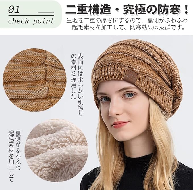 【快適・柔らかい】軽量で柔らかい肌触りと優しい被り心地がポイントの真冬専用のニット帽です。ふんわりと頭を包み込む軽い被り心地。ストレスのないフィット感に仕上げています。長時間かぶっても、窮屈感もなく、ゆったりとかぶれるサイズ感。