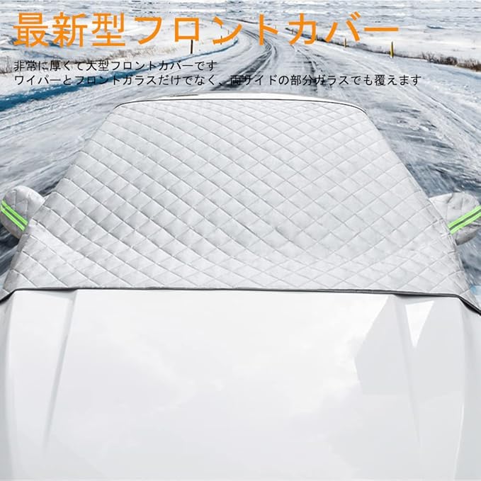【凍結防止・積雪対策】フロントガラスカバーを外してだけで積もった雪を簡単に取り除きます。朝の出発は楽になり、通勤時間を短縮できます。非常に厚くて大型フロントカバーなので、ワイパーとフロントガラスだけでなく、両サイドの部分ガラスでも覆えます。紫外線を遮断し、ワイパーとフロントガラスの使用寿命を効果的に高めて、夜の露もしっかり防ぎます。