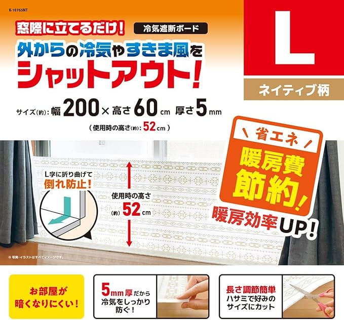 パークレーン 窓際 あったか 冷気 遮断ボード L 幅200cm ネイティブ柄 節電 寒さ すき間風 電気代節約