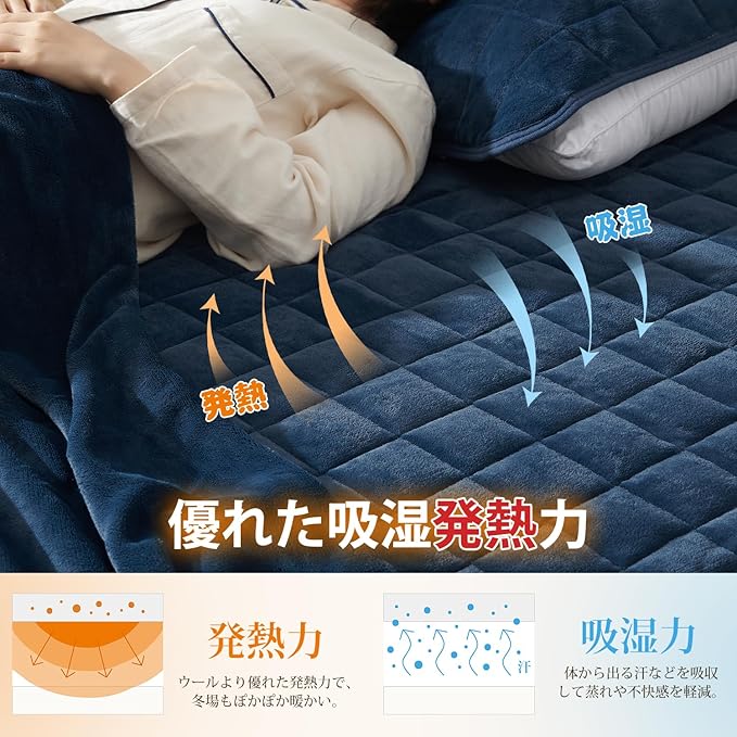 クモリ(Kumori) 冬用 ボックスシーツ シングル あったか 1枚2役 マイクロファイバー 極暖 フランネル 吸湿発熱 TEIJIN(帝人)中綿 毛布タッチ 敷きシーツ ふわふわ 静電気防止 マットレスカバー 洗える 暖かい 毛布タッチ ベッドカバー ネイビー シングル・100X200cm