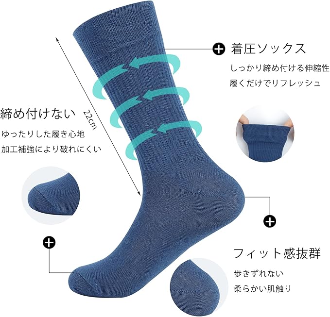 ・肌触りのやさしい綿素材や弾力性の高い繊維を使い、ふくらはぎへの締め付け感があるメンズクルーソックス、履くだけでサポートなり、一日の脚疲れからすっきりになります、平日でも休日でも使える靴下 メンズ 7足セット。 肌触りも抜群に良く、高級感を感じさせる生地の質感は、 さりげない男のおしゃれを演出してくれます。 抜群の吸水性と通気性で、蒸れないから夏は涼しく、冬は暖かく一年中気持ちよく履き続けられます。