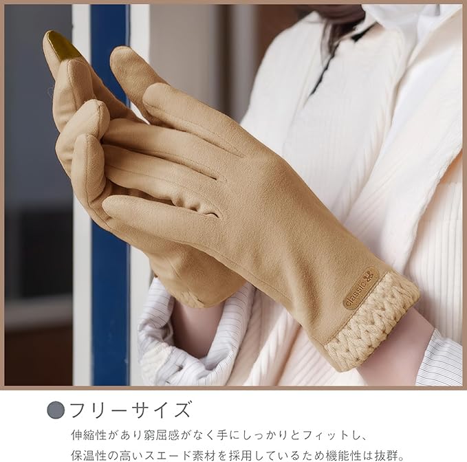 【仕様】サイズ:フリーサイズ(手袋の全長が23cm、中指の長さが9cm)メイン素材: スウェード生地・スエード