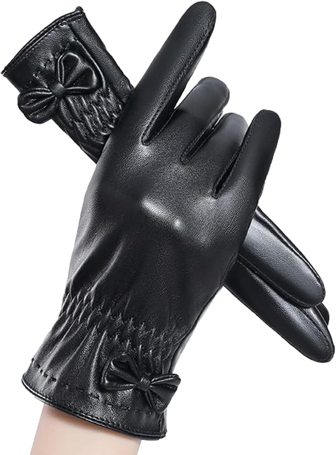[LEZOOY] 革手袋 レディース 羊革 レザーグローブ 手袋 冬 防寒 防風 保温 裏起毛 柔らかい ちょうむすび付き手袋 女性 冬 タッチパネル対応 暖かい 通勤 通学 自転車 運転 ワンサイズ