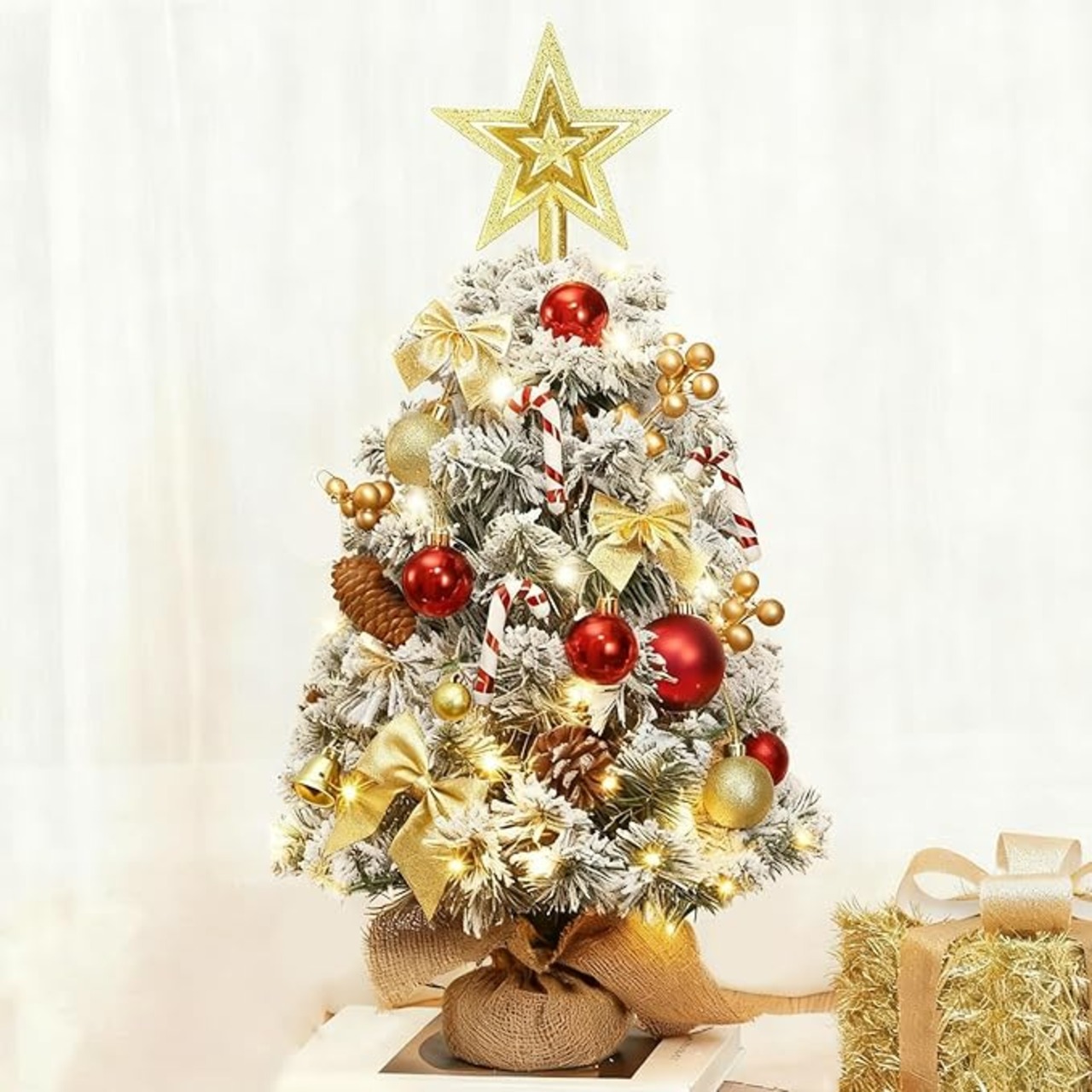 Vinnatsuクリスマスツリー 卓上 45cm 雪化粧 オーナメント付き LEDイルミネーションライト 電池式 卓上 ミニクリスマスツリー 足隠し 組立簡単 おしゃれ クリスマス装飾 クリスマスグッズオーナメント 玄関に 飾り ウェルカムツリーにも インテリア 用品 プレゼントに最適 (ゴールド)