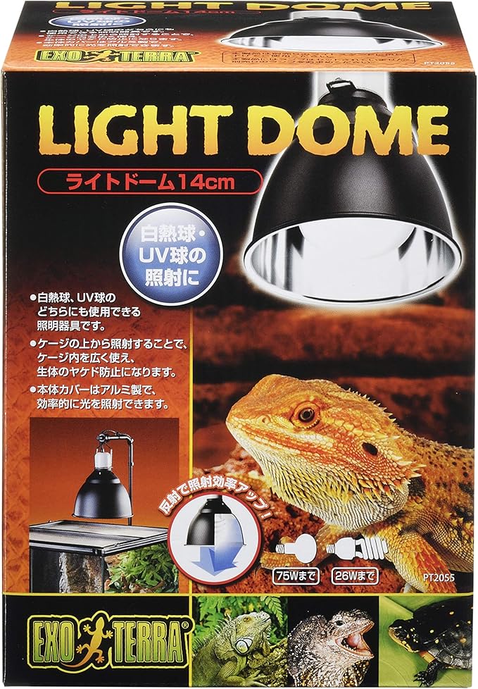 EXO TERRA (エキゾテラ) ライトドーム 14cm 白熱球・UV球用照明器具 75Wまで ケージの上から照射する白熱球・UV球のどちらにも使用できる爬虫類・両生類用照射器具