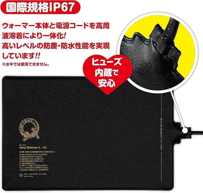 安全性と耐久性を重視した優れた温度調整機能を持つウォーマーです。IP67規格に準拠した防水性能を備えており、濡れた環境でも安心して使用できます。さらに、自己制御機能により、表面温度を約45℃に一定維持し、過熱を防ぎます。
