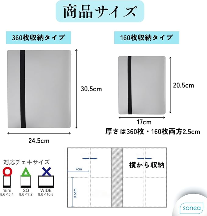 sonea チェキ帳 チェキホルダー インスタックスミニ インスタックス チェキ アルバム (ホワイト, 360枚)
