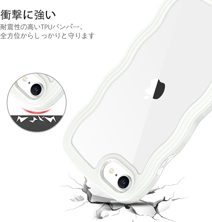 BENTOBEN iPhone SE 第3世代 用/iPhone SE2 / iPhone8 / iPhone7 ケース クリア TPU+PC 韓国 可愛い ウェーブ ソフト 滑り止め 薄型 軽量 耐衝撃 おしゃれ スマホケース ストラップホール付き アイフォン SE3 SE2 8 7 ケース 4.7インチ ホワイト