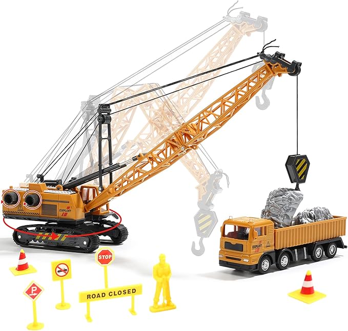 【複数の可動パーツ】クレーンと掘削機本体の両方を360度回転させることができます。油圧設計のシミュレーション、掘削機アームとショベルヘッドを自由に曲げることができ、子供たちはクレーンのラインを自由に調整してアームを曲げたりまっすぐにしたりできます。