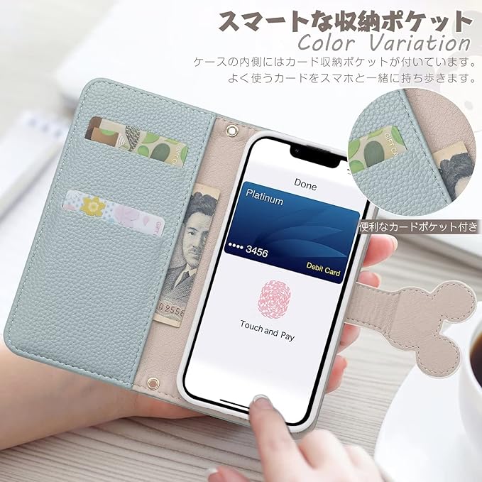 ღ【ショルダー財布型ケース・実用的なデザイン】スマホ横置きスタンド機能付きで、動画視聴、読書などに最適!長さを調節可能なショルダーストラップ付きで、肩から掛け・斜め掛けが可能です。お持ちのカード、定期券などを簡単に収納でき、財布型ケースとして、名刺やカードなどが収めて日常生活に便利です。