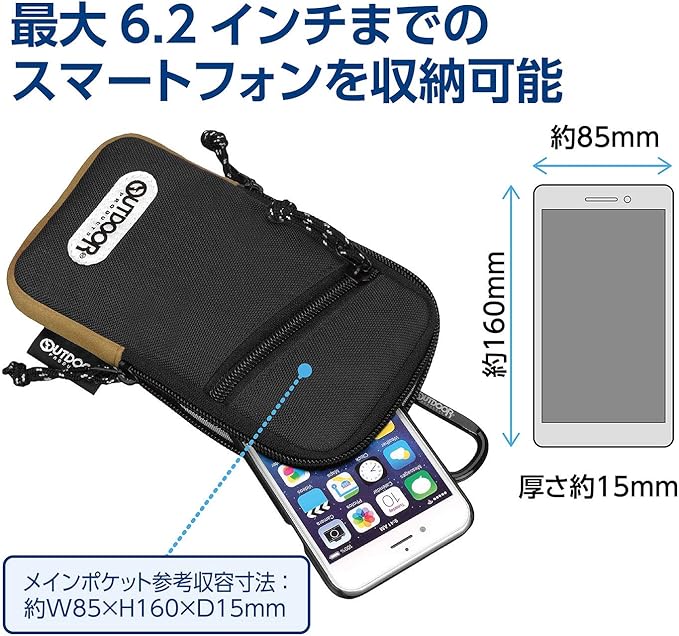 最大6.2インチまでのスマートフォンを収納可能(iPhone 12 12Pro 12mini 12Pro Max、11Pro、XS Max、8 Plus、Galaxy Note8、Xperia XZ2 Premium対応)